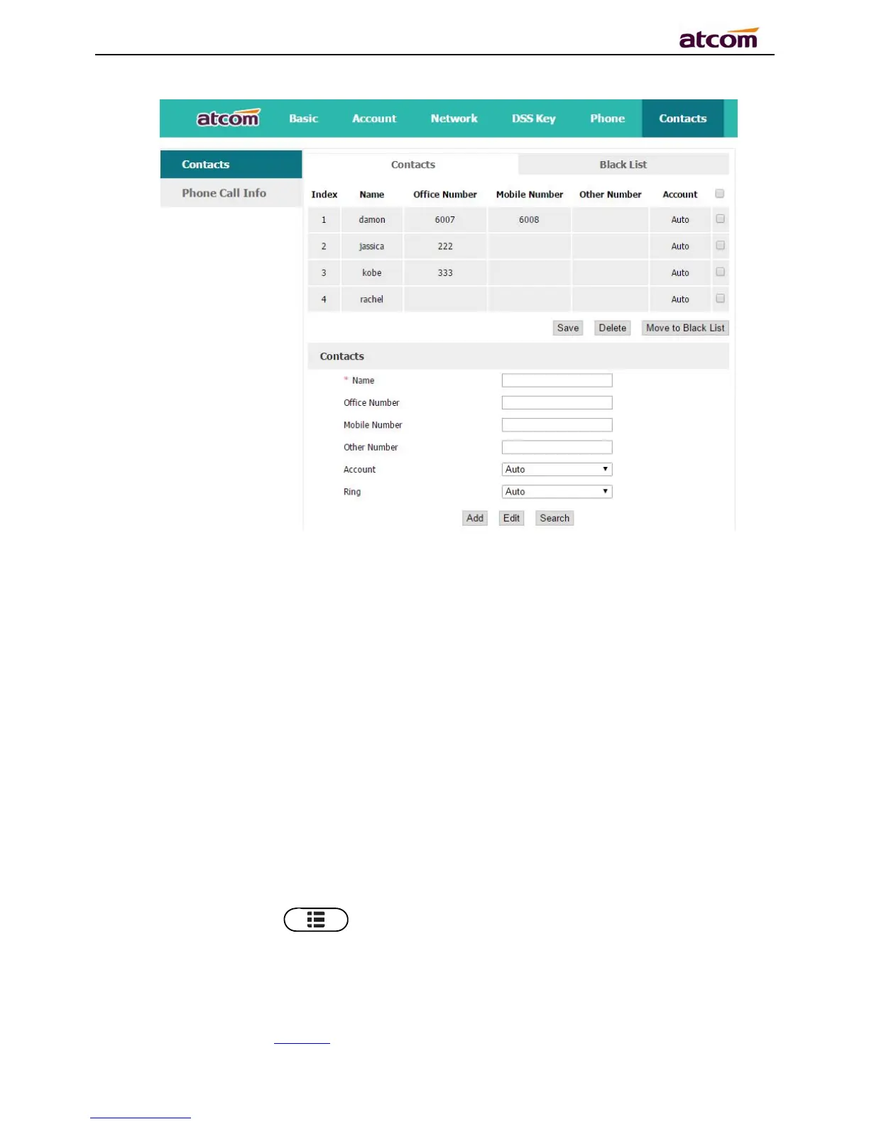 items. It’s able to add new contact, edit or delete exist contact or dial, also move the item to