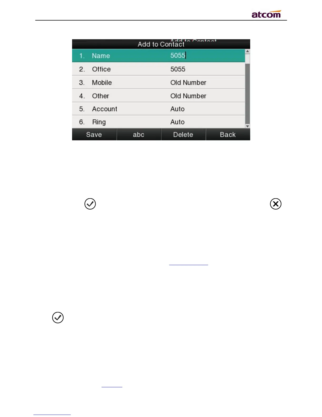 3. Press the key or soft key “Saved” to save the modification, press the key