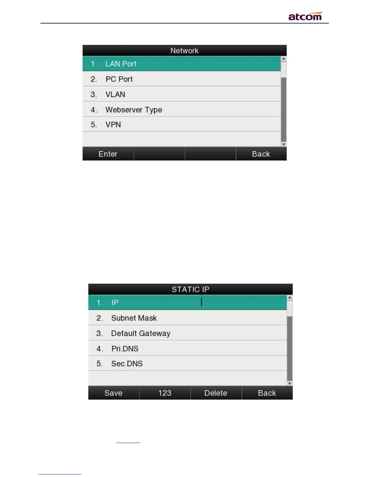 If the phone gains IP address via Static IP, user must input the IP address info manually.