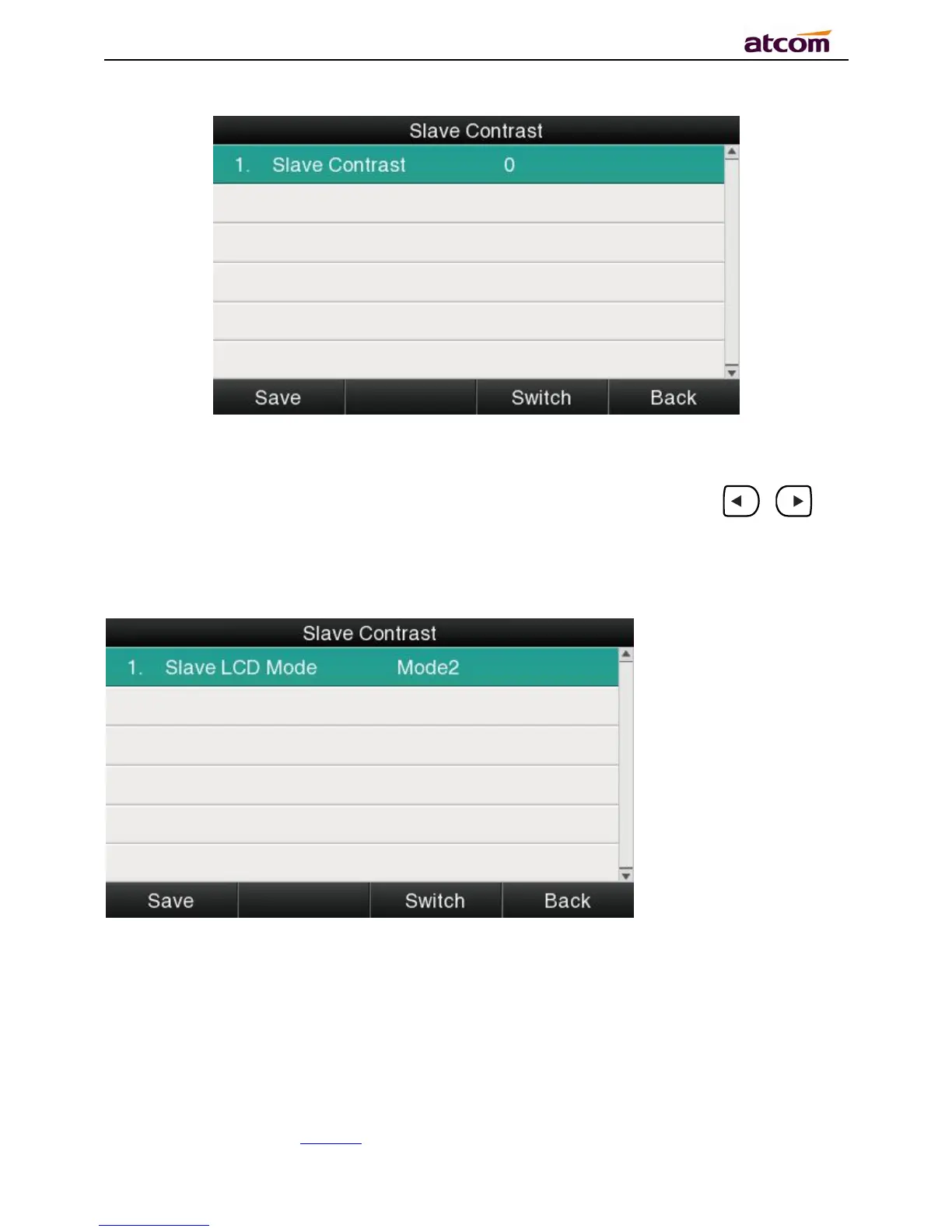 There are 2 different modes for options,press the soft key “Switch” or the key 、 for