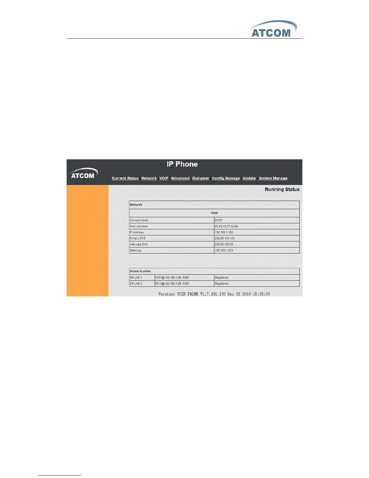 This page shows the IP phone working status.