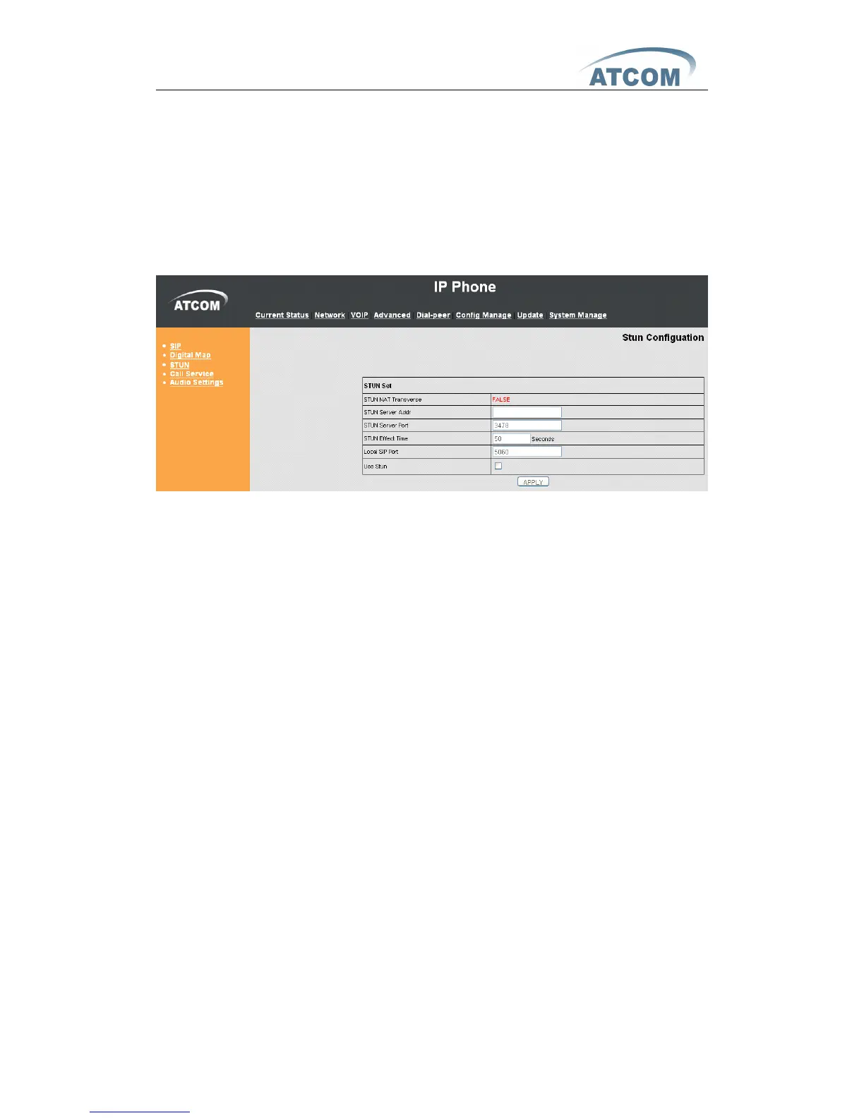 Notice: SIP STUN is used for NAT transverse. When you config STUN