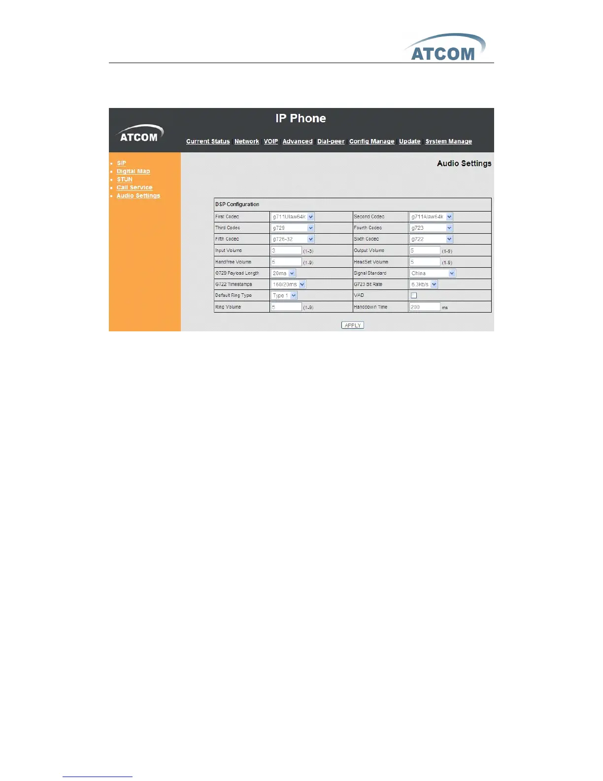 Second Codec : The second preferential DSP codec: G.711A/u , G722 , G.723 ,