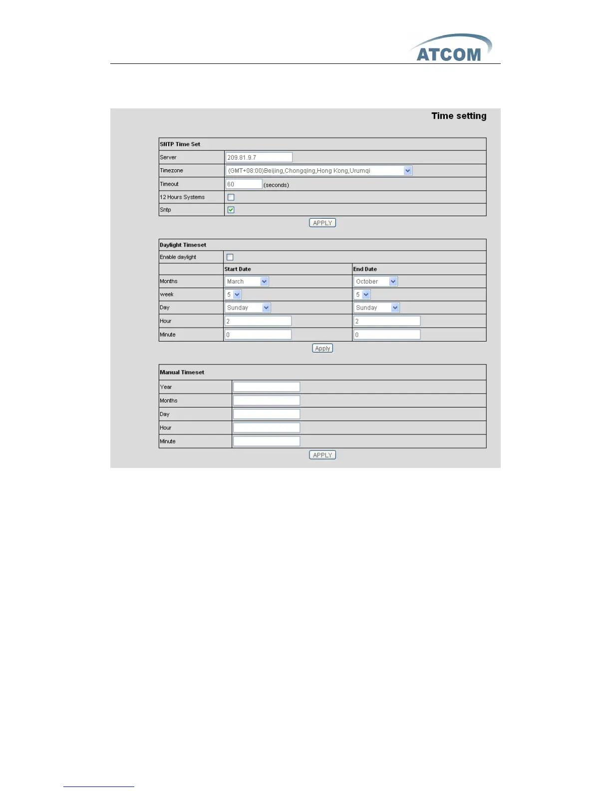 Daylight Time set : daylight setting through manual .