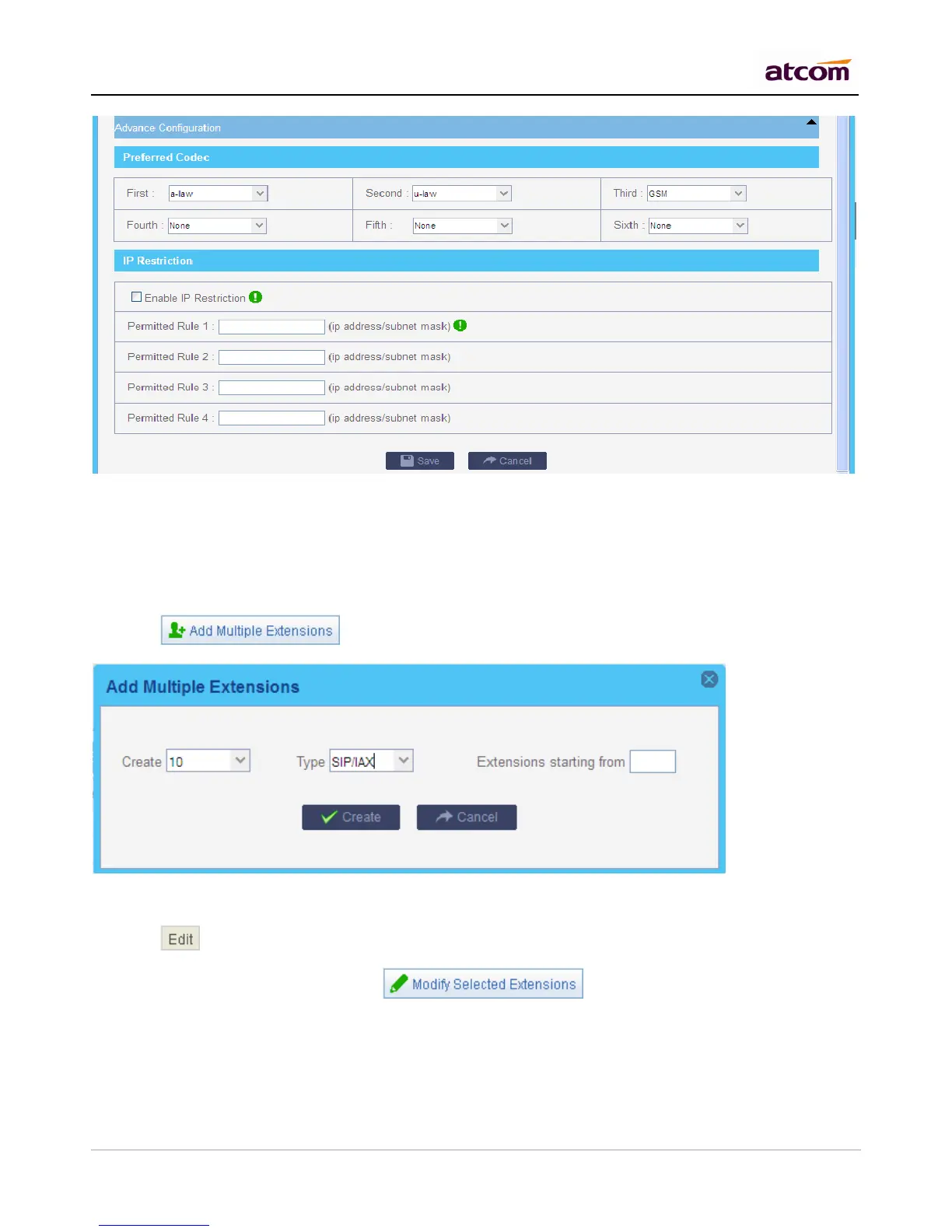 b. Choose one or more extensions, click to modify them simultaneously.