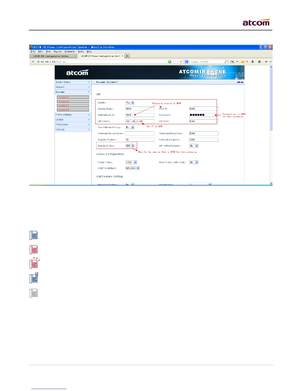 Login the web administration page of IP phone and set the account information.