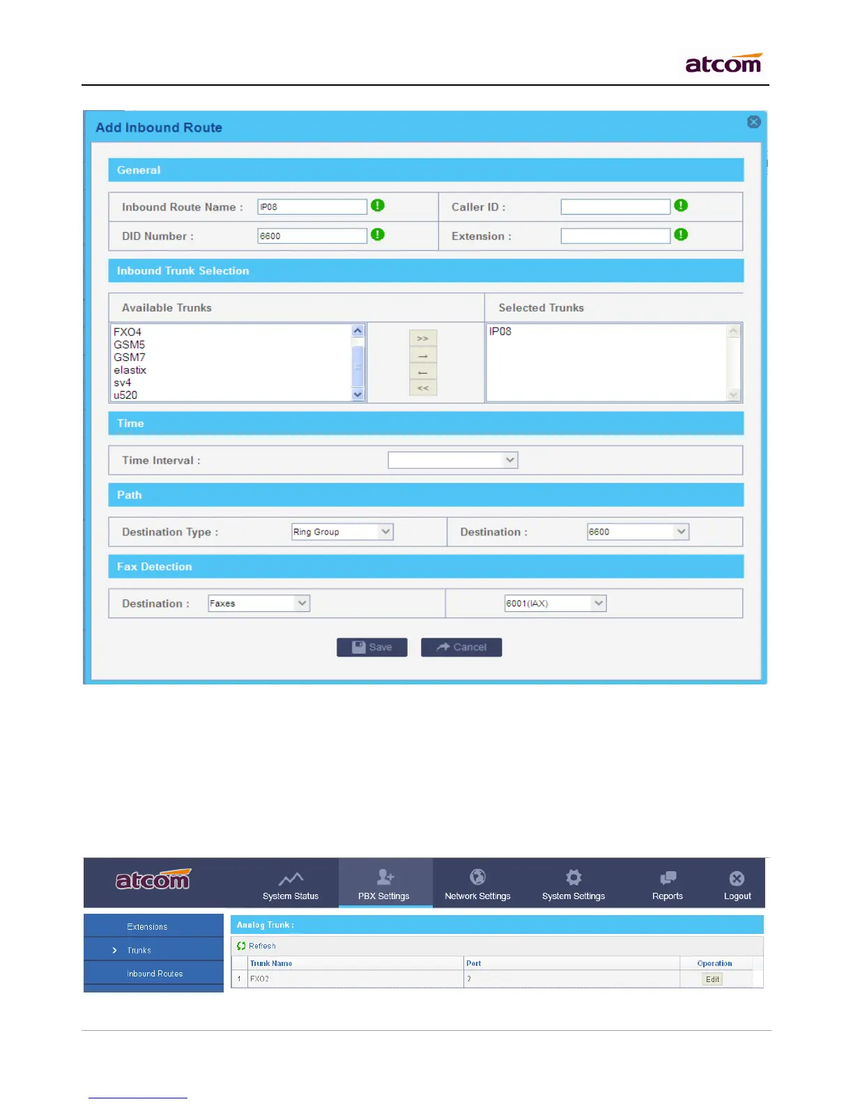 NOTE: Before using them, please make sure FXO port is connected with PSTN line (InService). The connection