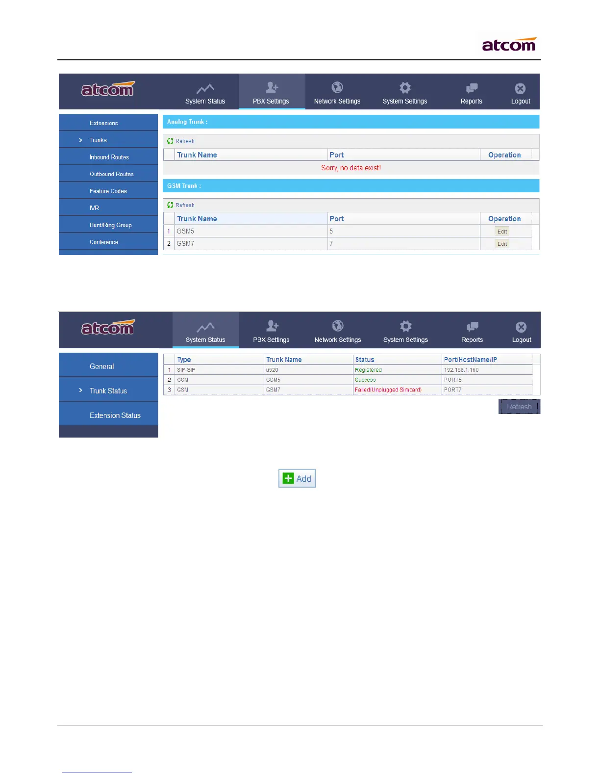registered. The connection can be checked in System Status -> Trunk Status