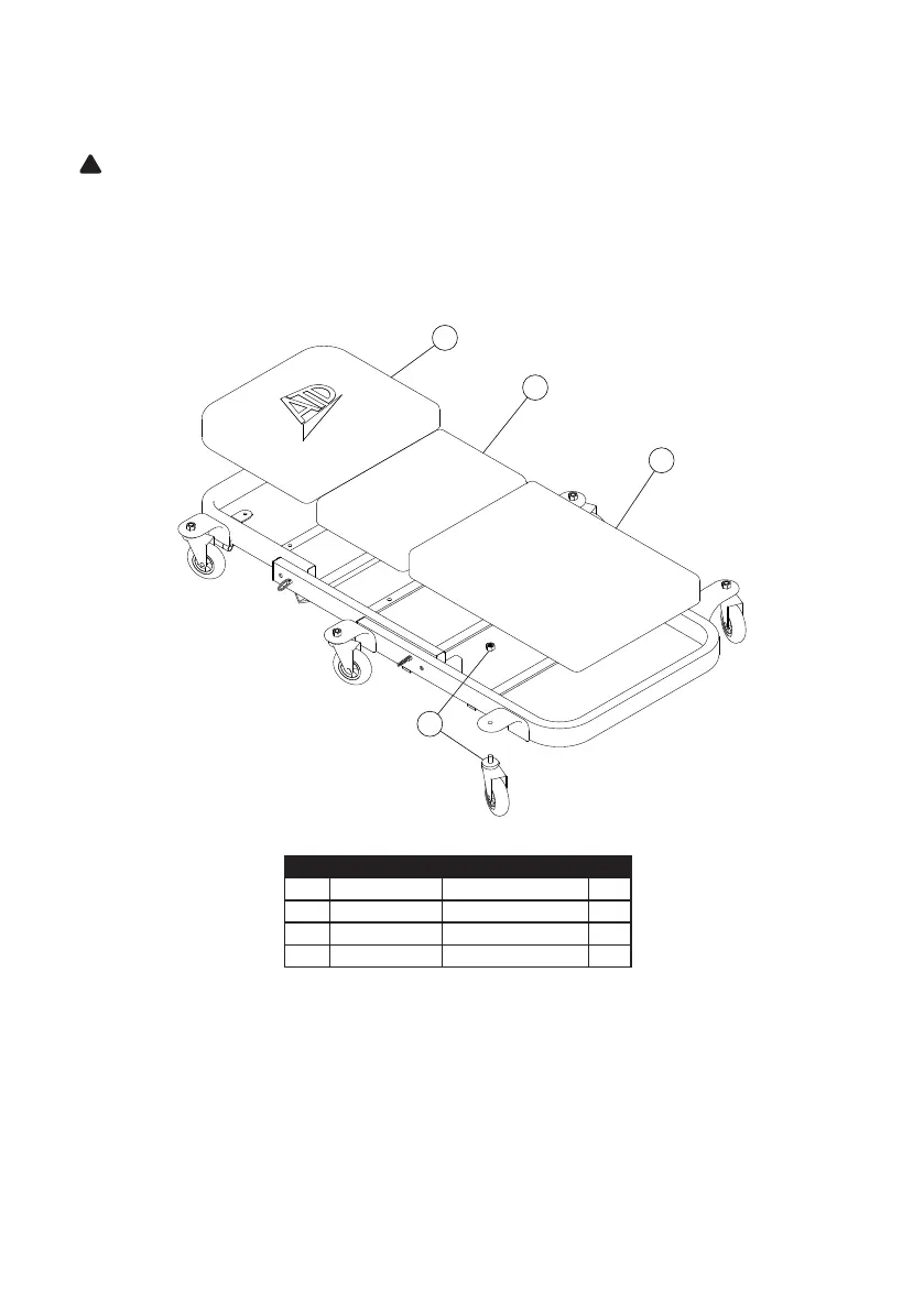 Not all components of the creeper can be replaced. Please contact your distributor for parts. When ordering parts,