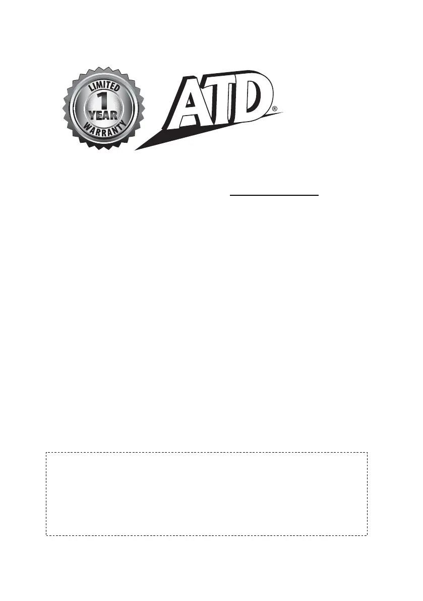 For a period of one (1) year from your purchase date, ATD Tools Inc. will repair or replace (at its option) without charge, your