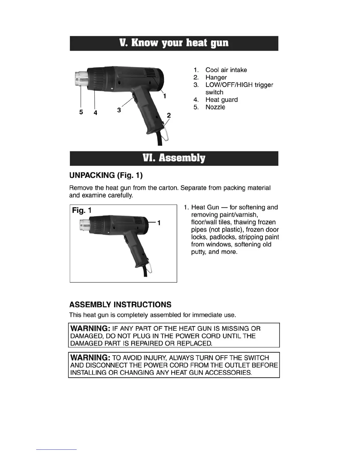 ATD Tools ATD-3736 - Know Your Heat Gun; Component Identification; Assembly; Unpacking and Inspection
