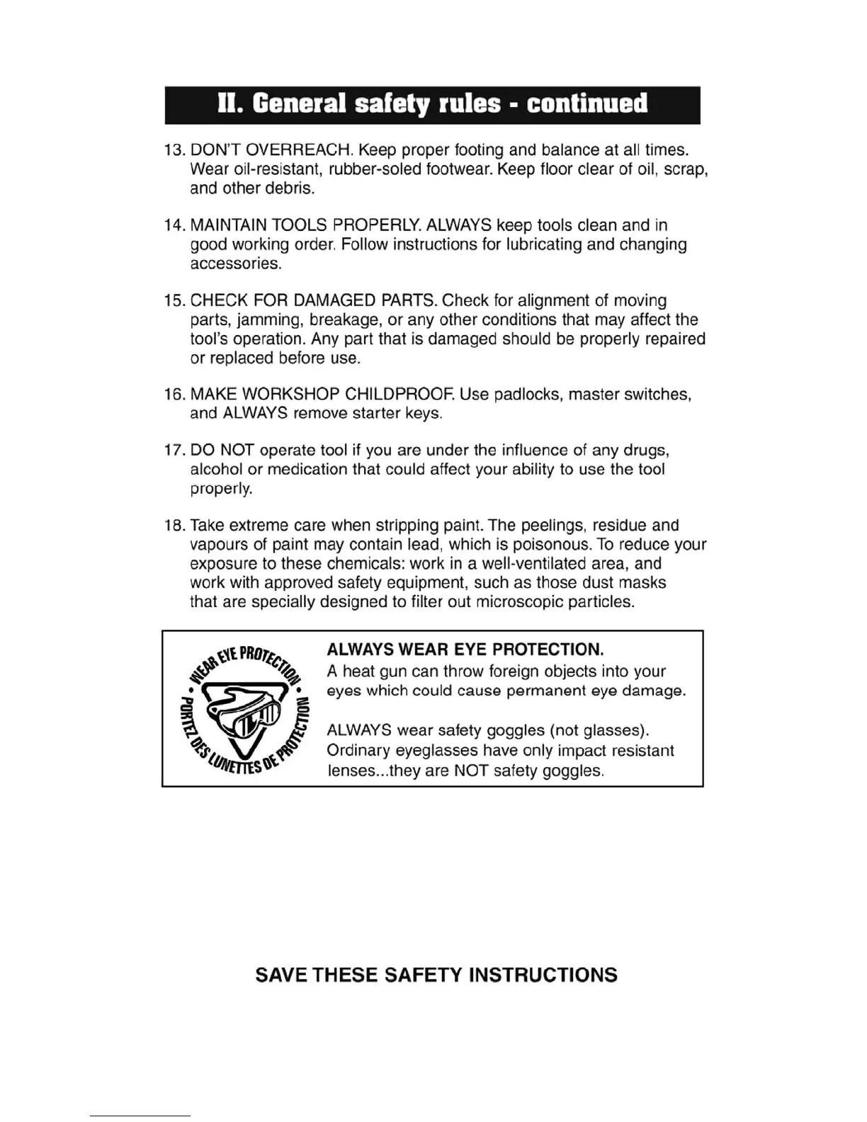 ATD Tools ATD-3736 - General Safety Rules - Continued; Overreaching and Tool Maintenance; Damage Checks and Security; Paint Stripping Precautions
