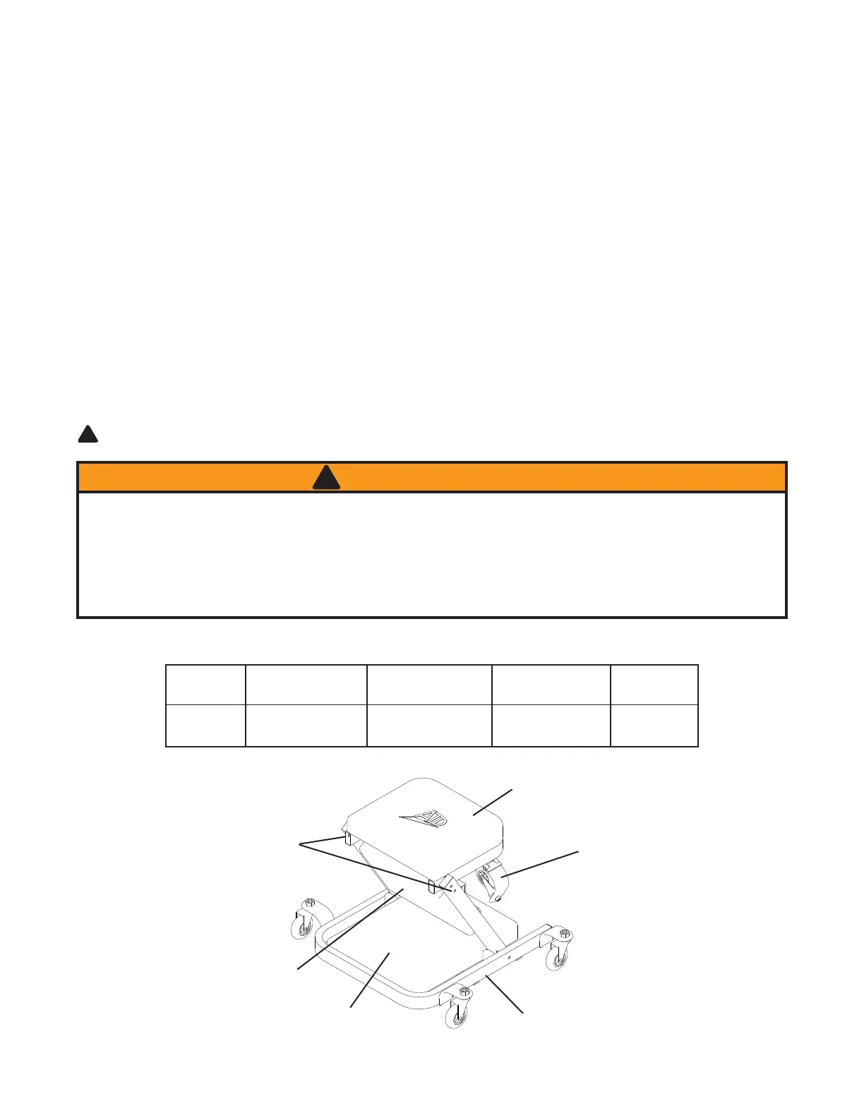For your safety, read, understand, and follow the information provided with and on this folding creeper. The owner
