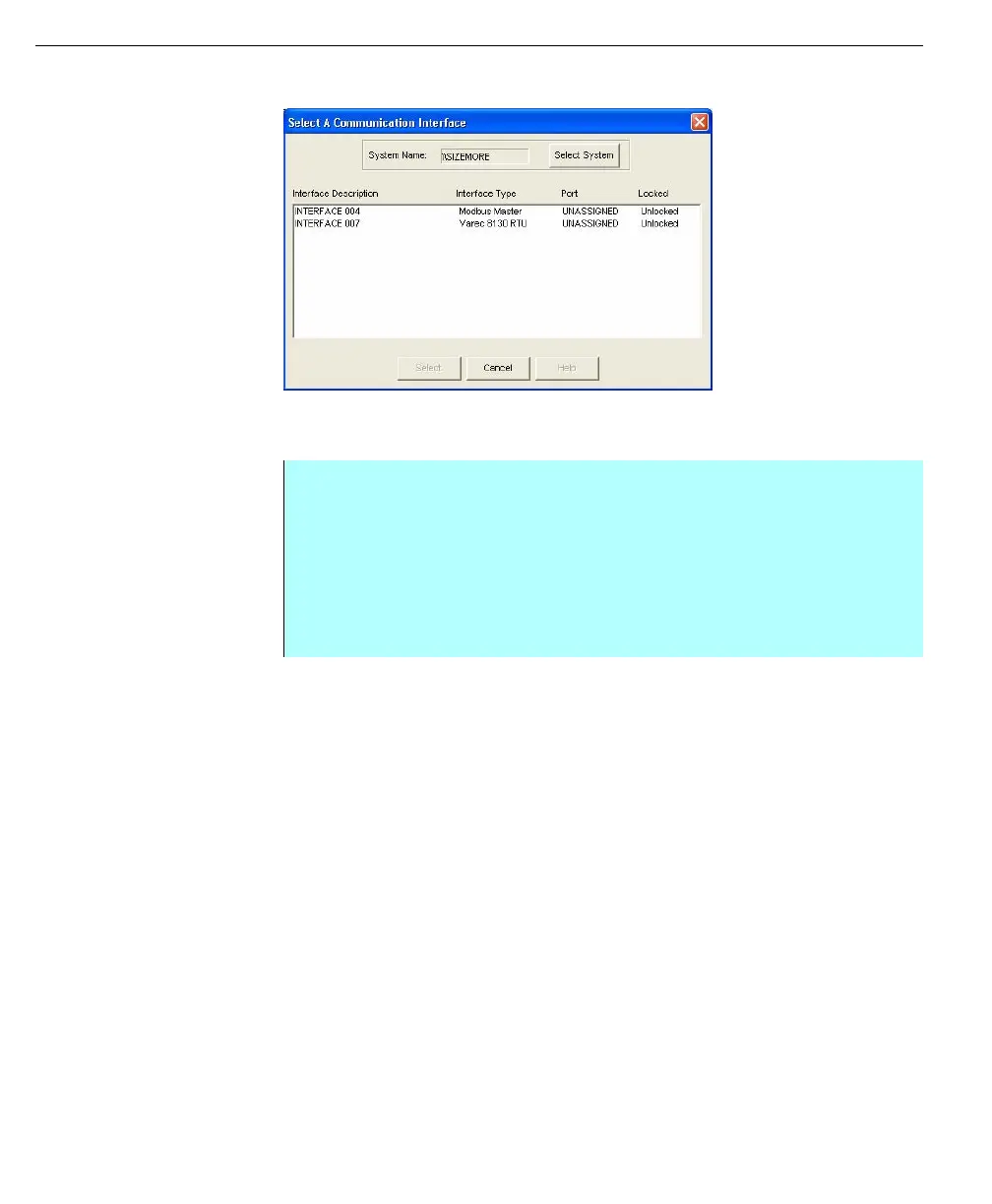 • Click Comm. The Select a Communication Interface dialog box appears and