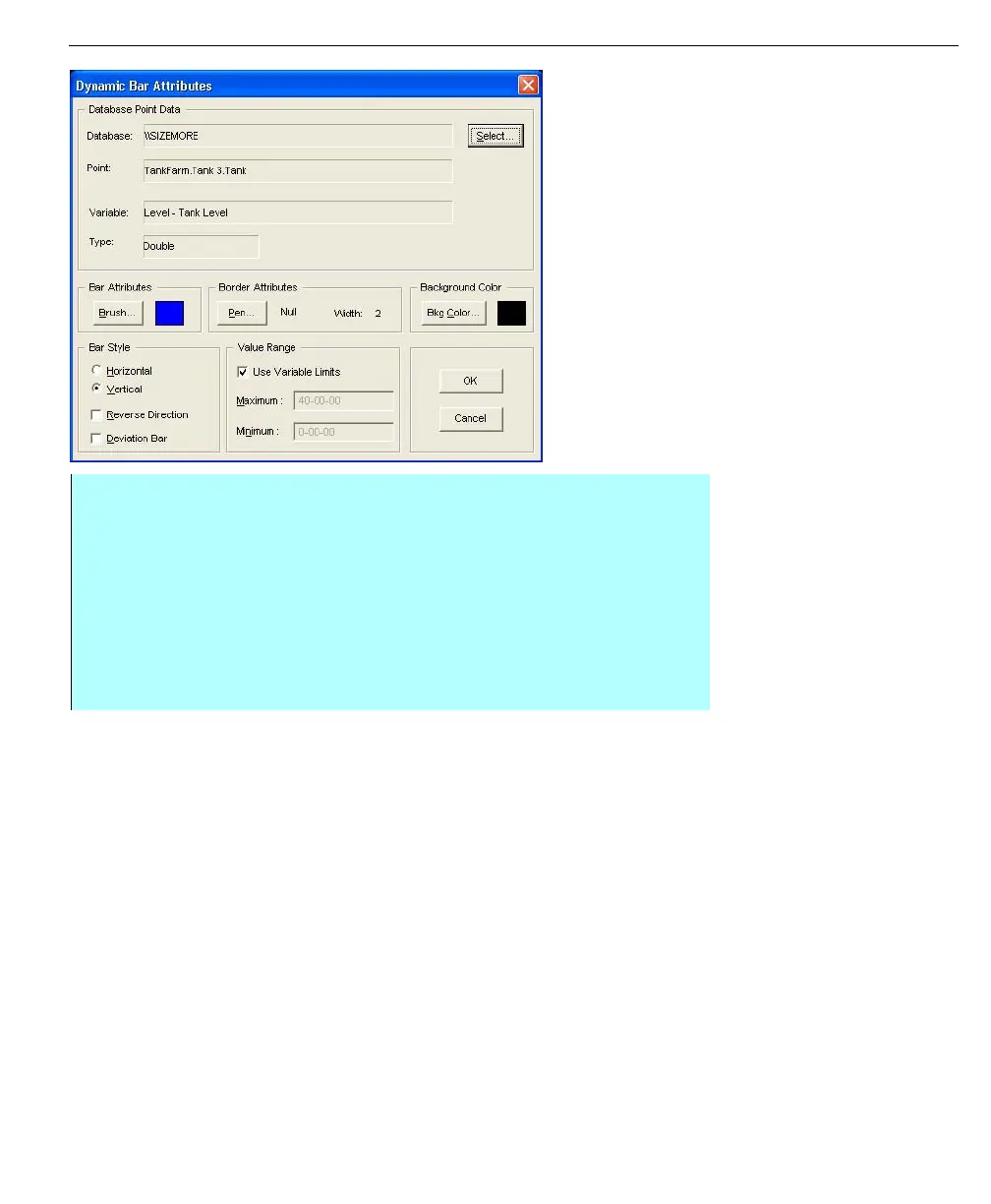• Select Brush to select the color, pattern, and style of the bar fill. Select Pen