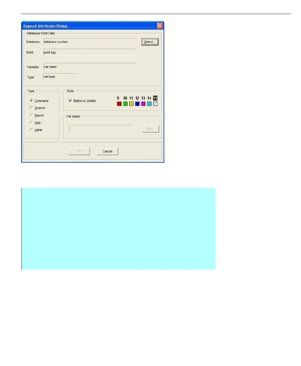 clicking the Database, Point or Variable buttons. Refer to the Values section