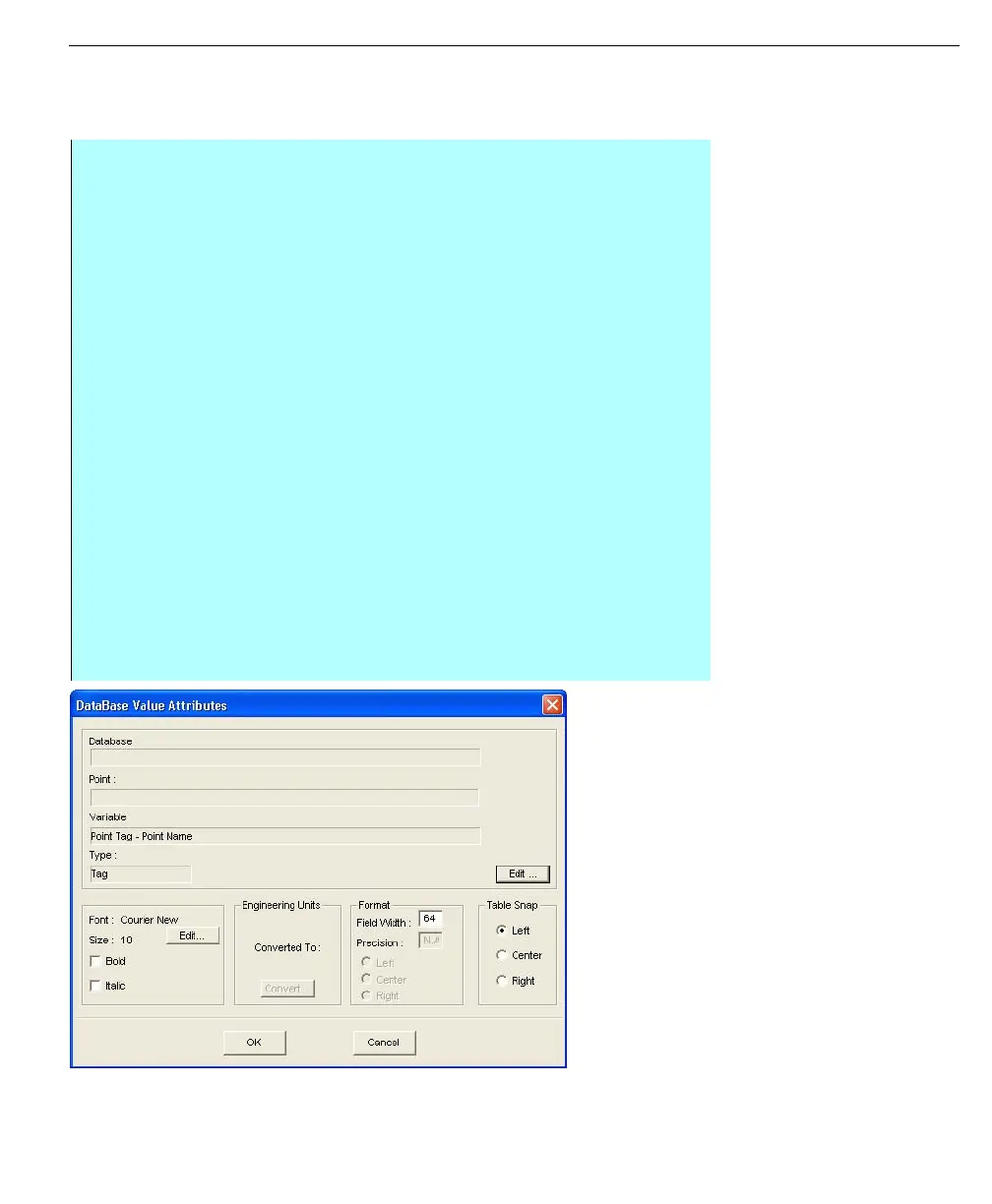 • The Database Value Attributes dialog box allows the user to set the