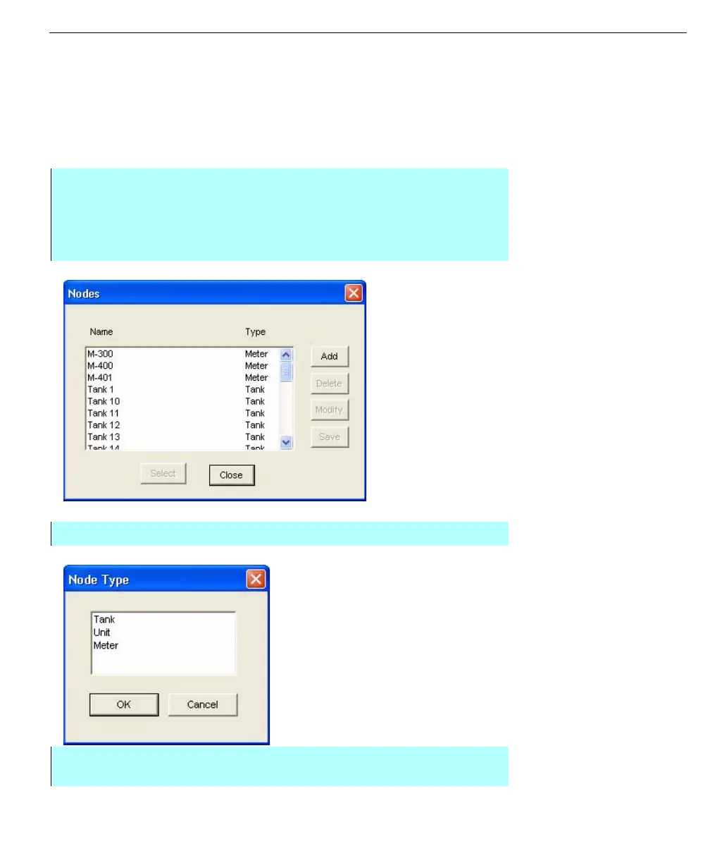 defined nodes are listed by name and type. From this dialog box you can