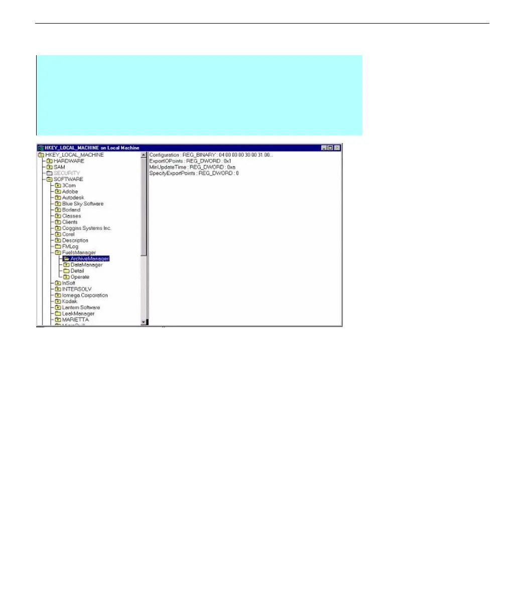 • Select HKEY_LOCAL_MACHINE, the FuelsManager key, and the