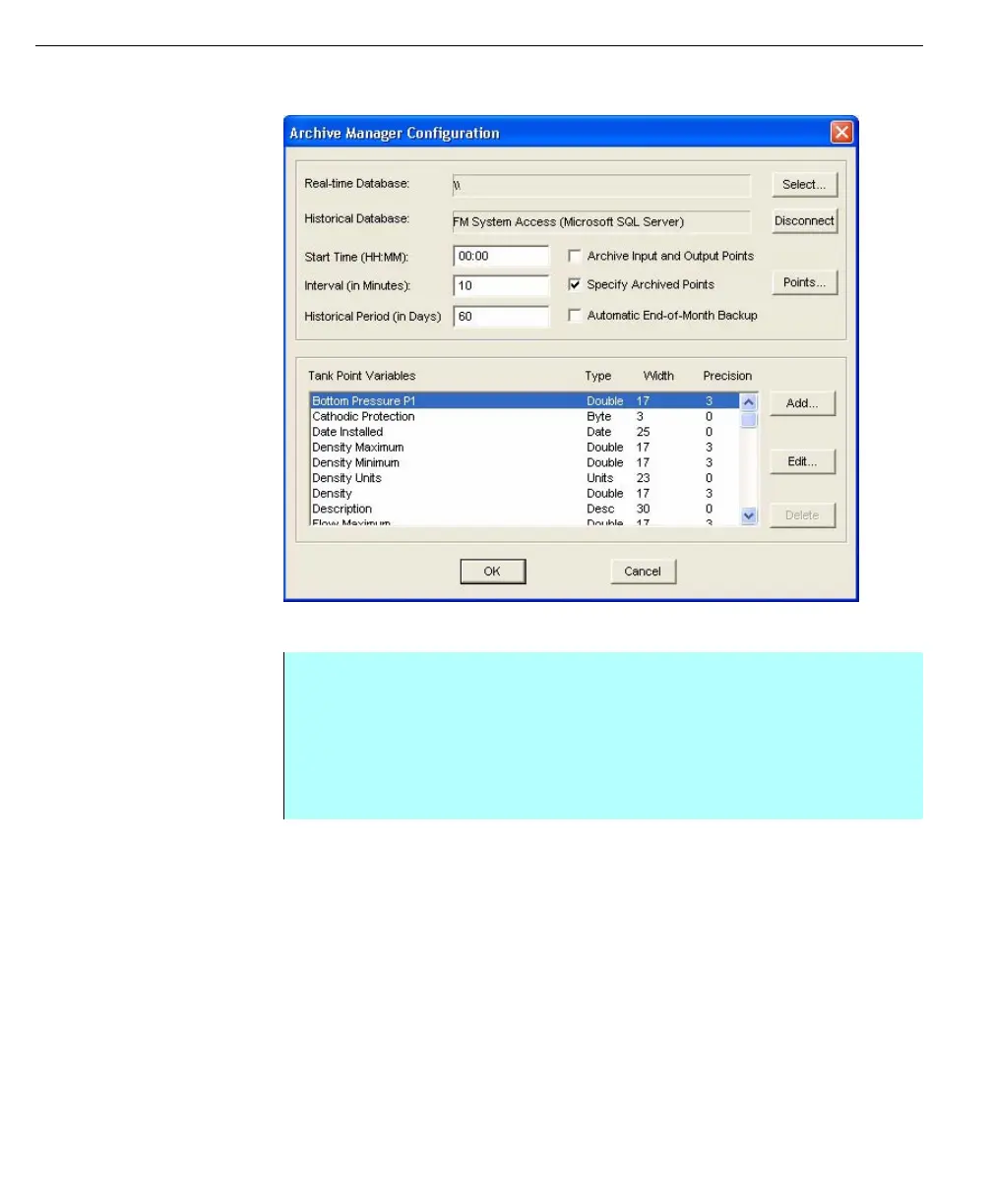 • Change the Interval entry to 5 and click OK. The system closes the Archive