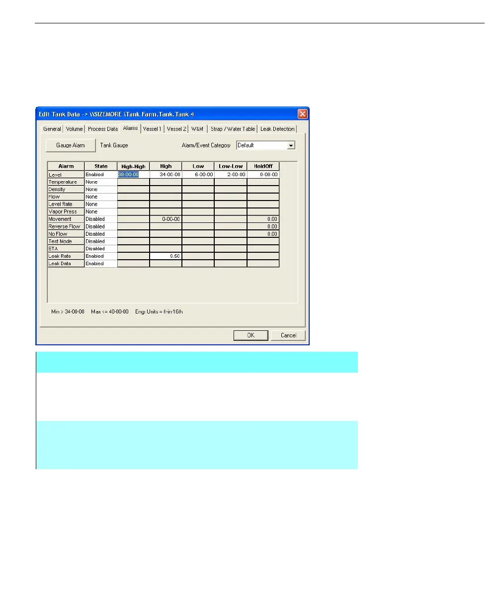 Leak Data Allows an Enable/Disable State. This alarm, when enabled,