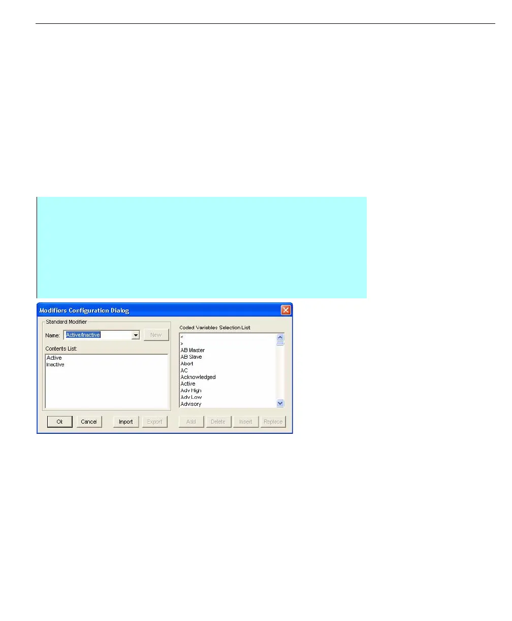 using the action buttons in the Modifiers Configuration dialog box.