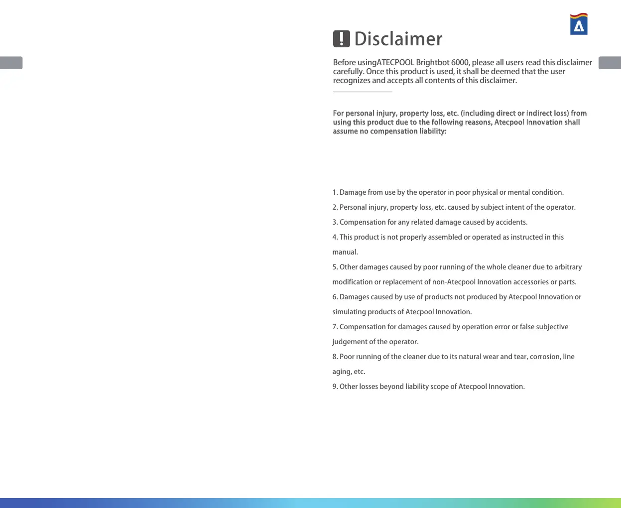 Before usingATECPOOL Brightbot 6000, please all users read this disclaimer