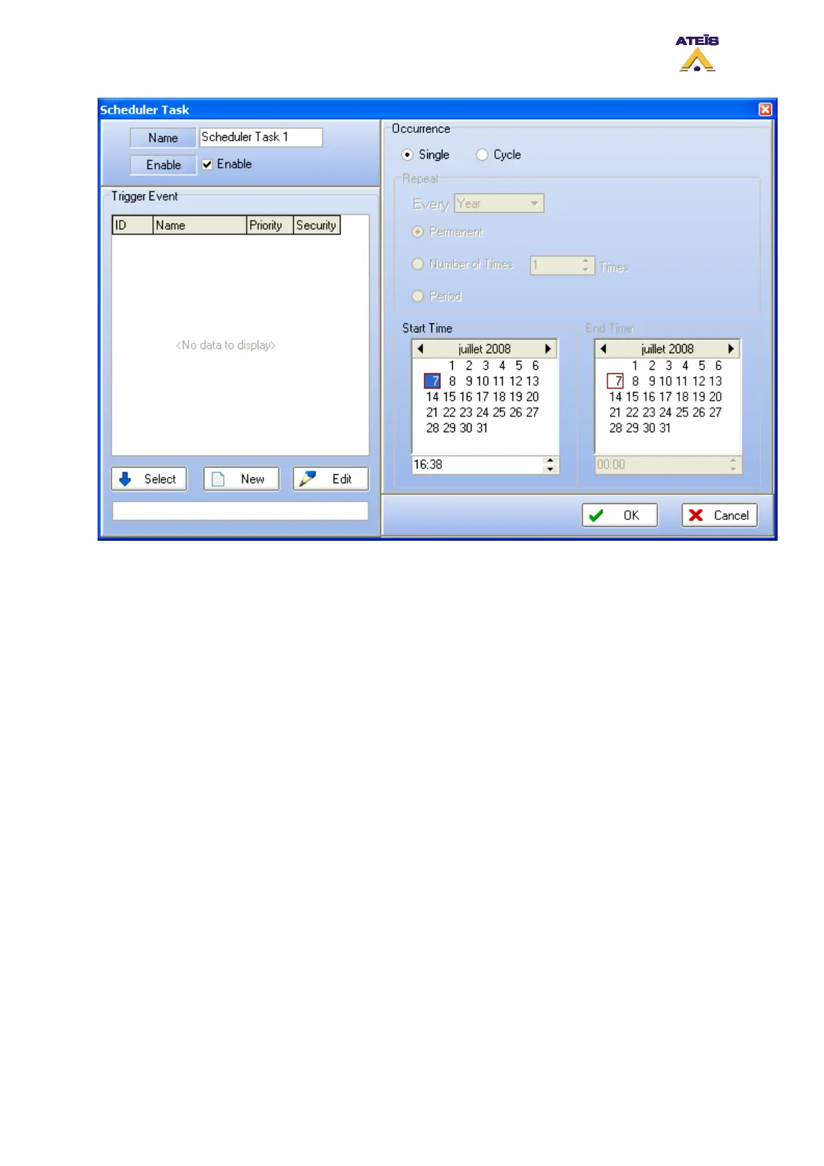 • Select if it is a Single occurrence task or a Cycle task. For Cycle task, see picture below.