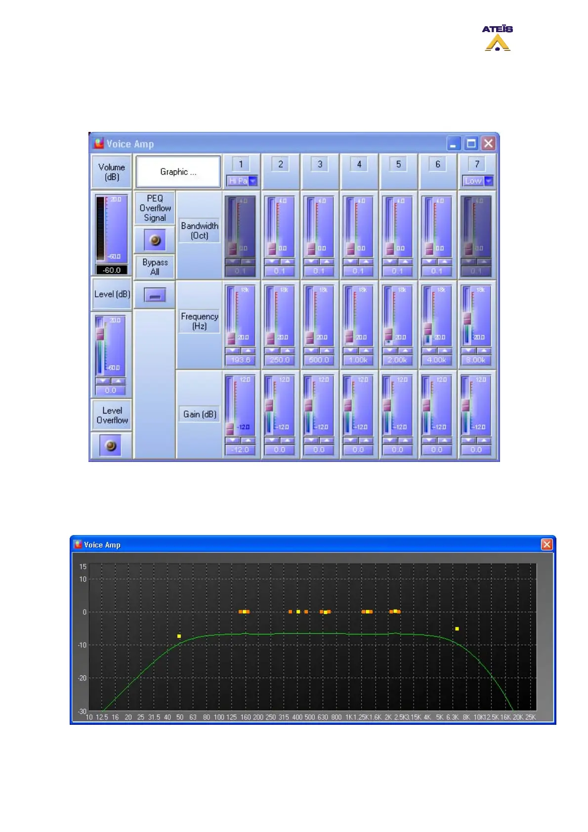 • By clicking on the Graphic button you will able to adjust the cutoff frequency and the gain directly