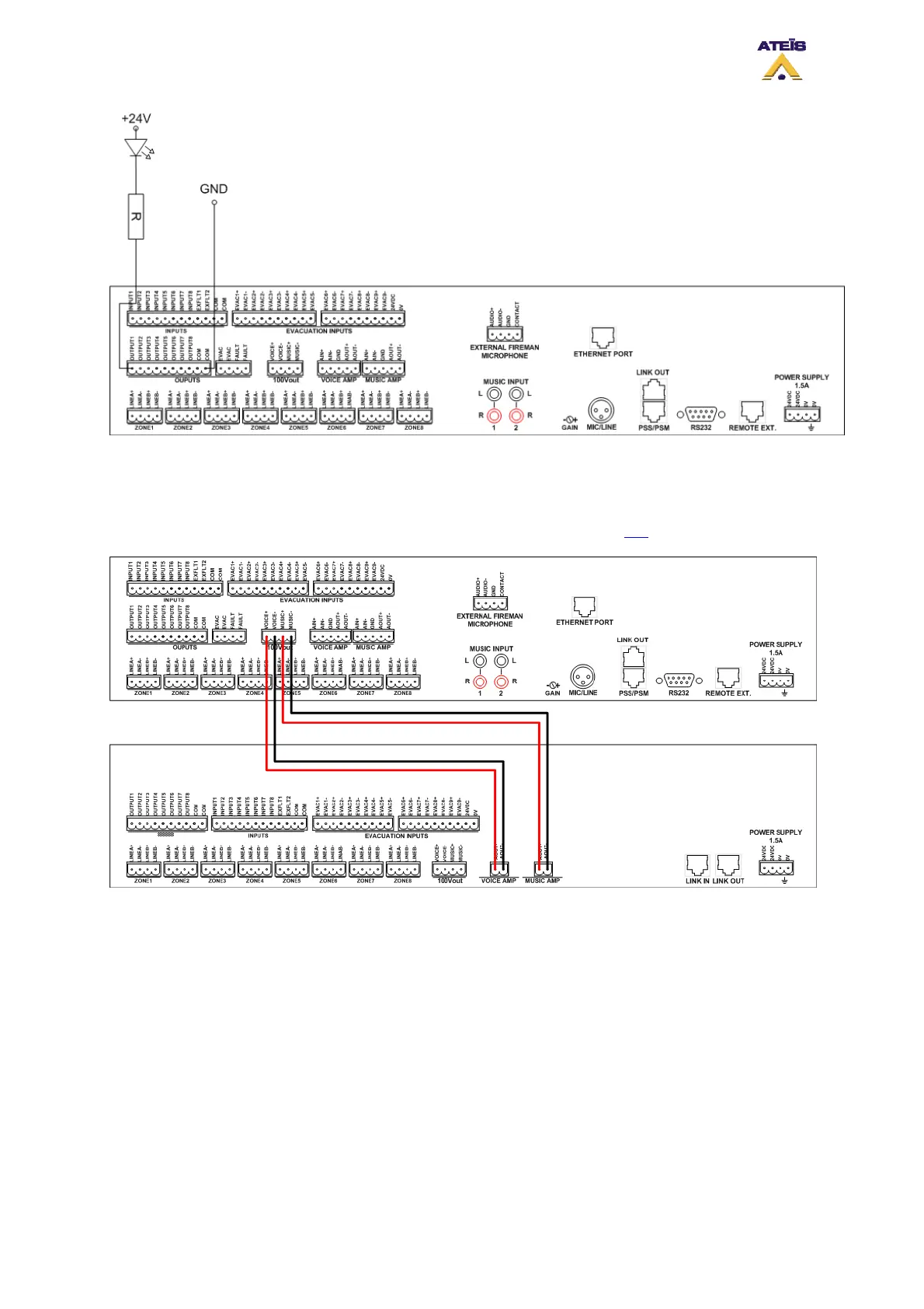 The 100V outputs have been made to link the 100V line from a master DIVA to a slave DIVA. To learn
