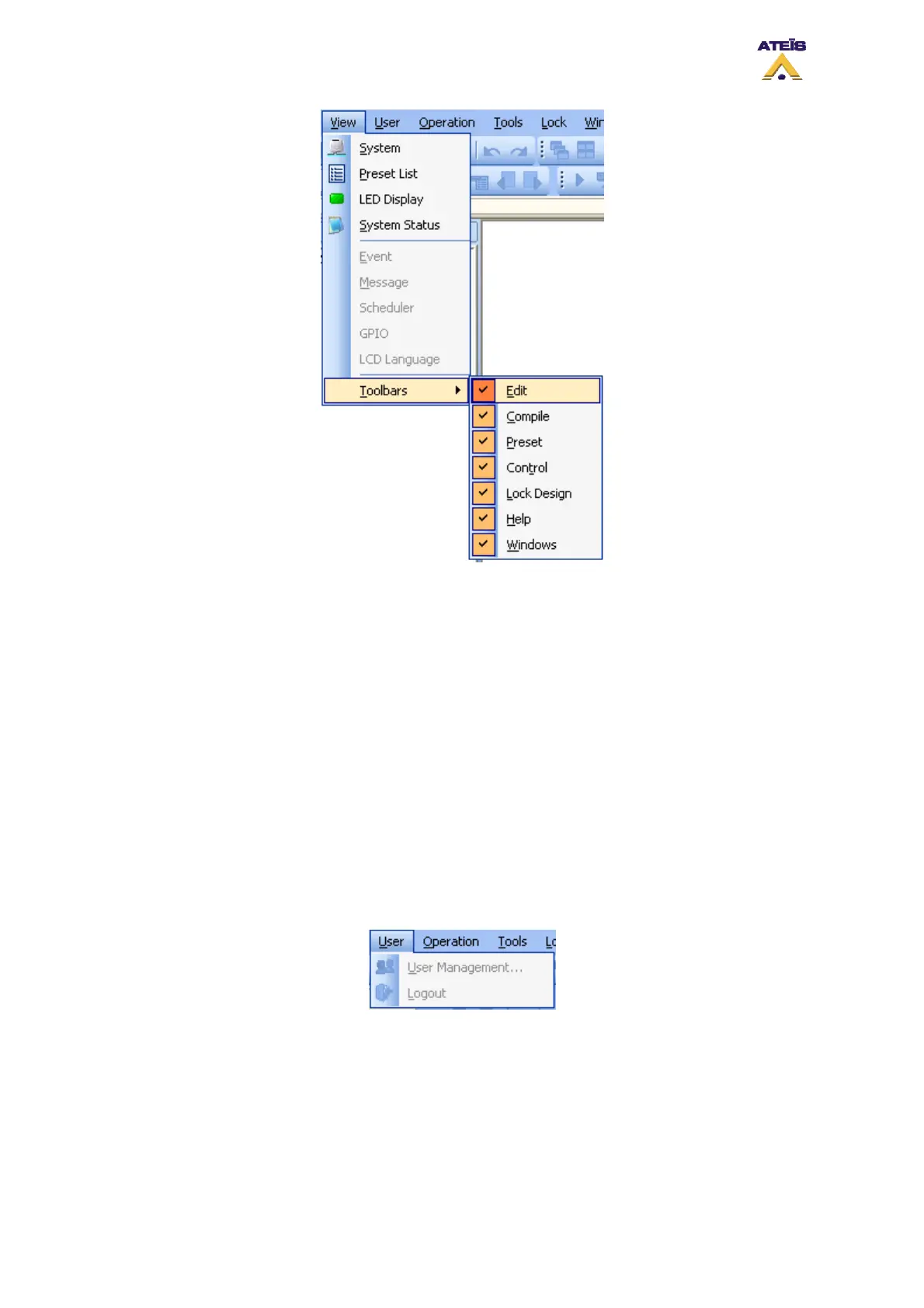 User Management: Calls the 'User Management' window to set up users or user groups and their
