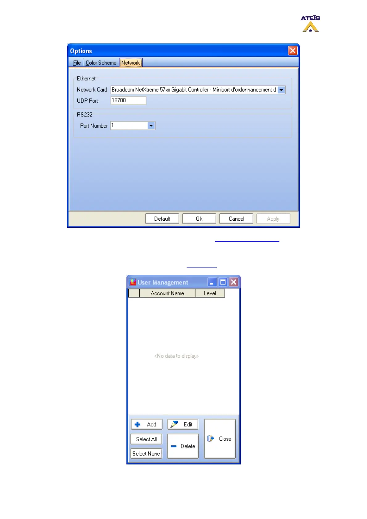 To access the user management window, go on the menu User -> User Management.