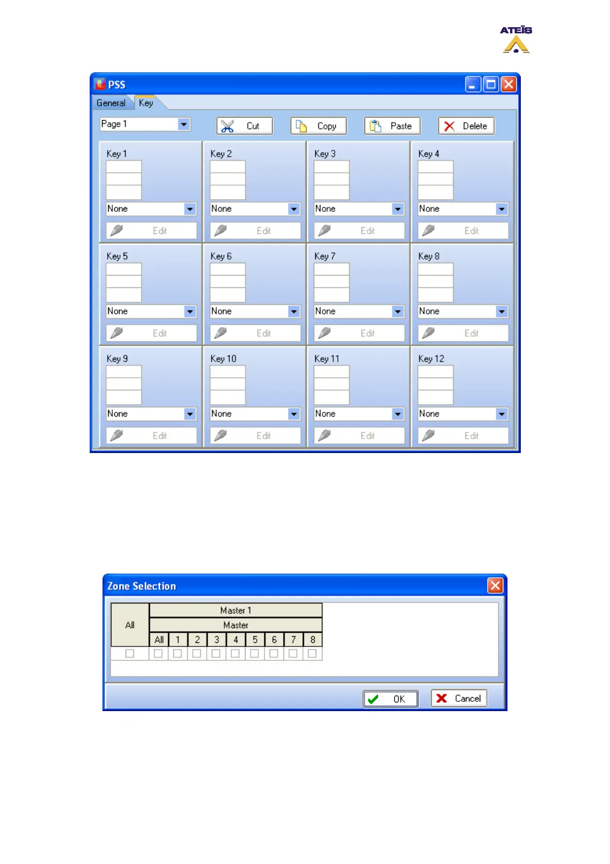 window, choose the zone(s) to associate to the key (see below).