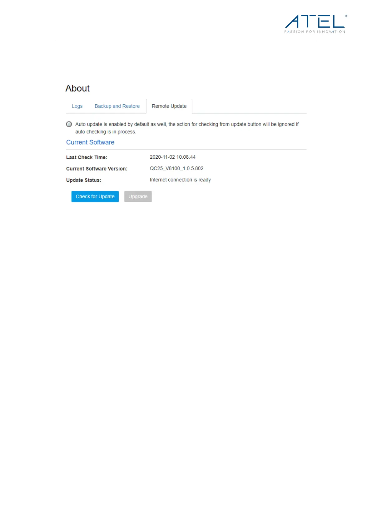 click the “Check for Update” button to check for a new software version. If a new version is