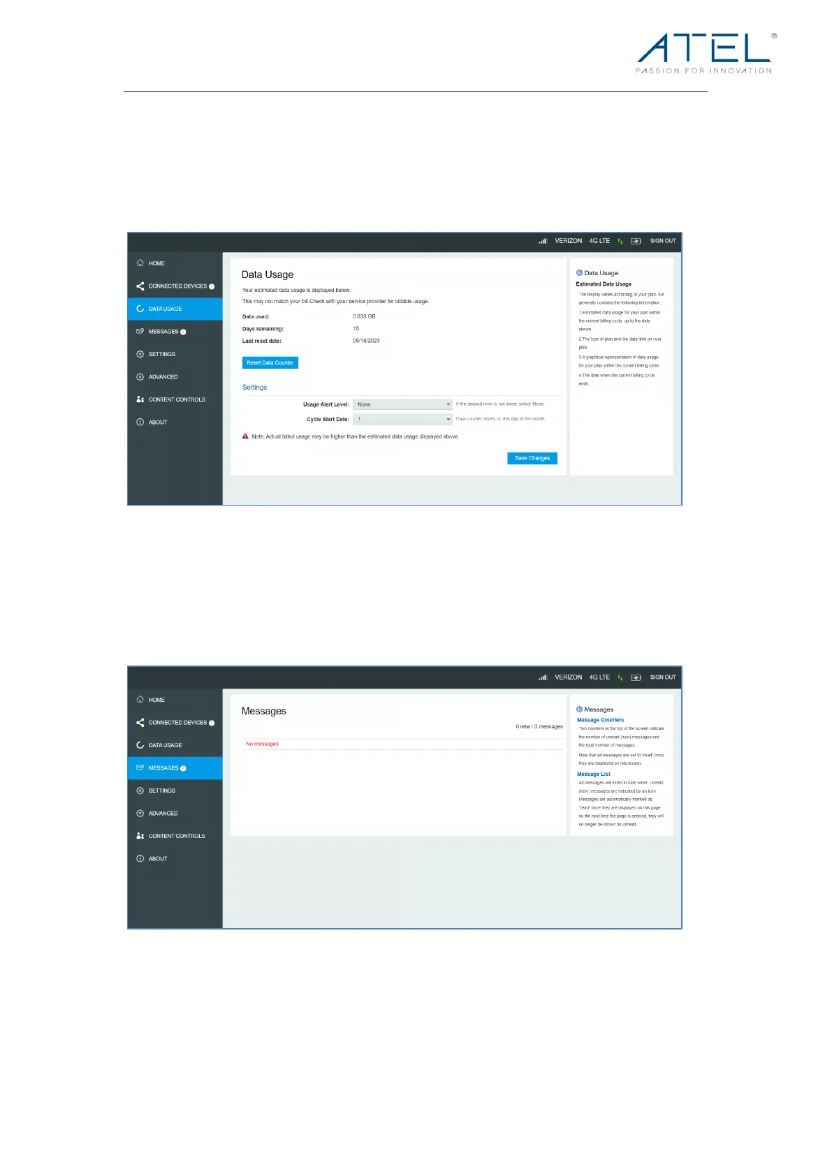 The messages page displays SMS messages sent to you by your wireless carrier.