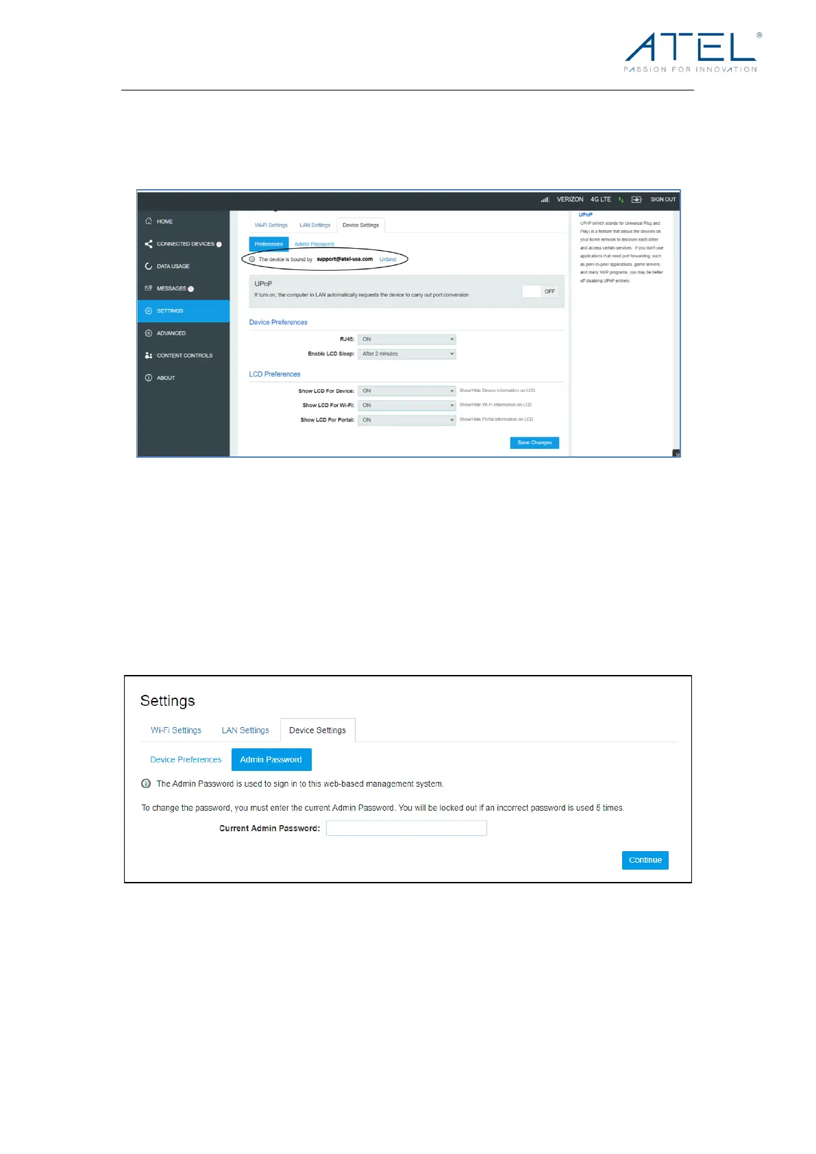 Note: If your device is registered to the ATEL remote management cloud platform,