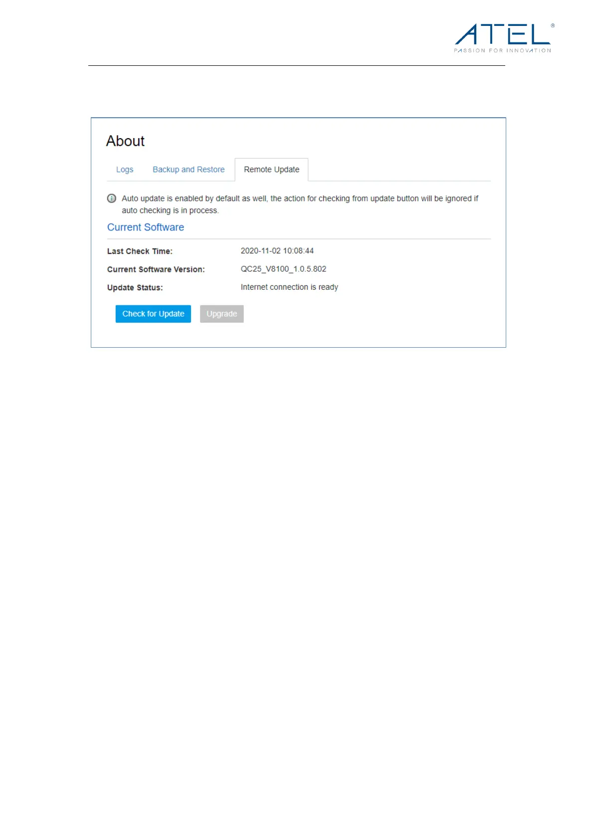 can click the “Check for Update” button to check for a new software version. If a new version