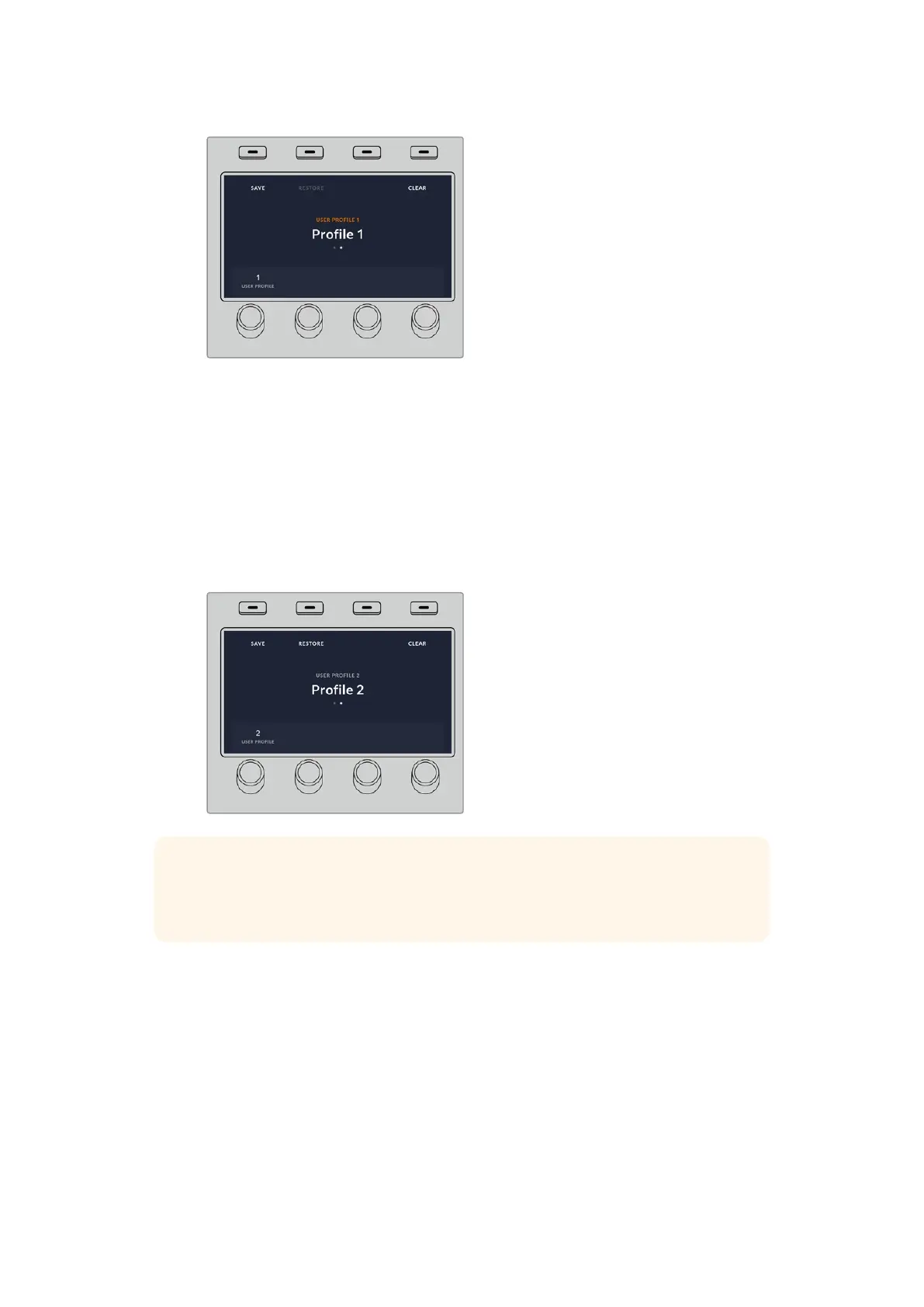 2 Using the soft control knob, navigate to the user profile you want to overwrite. If the
