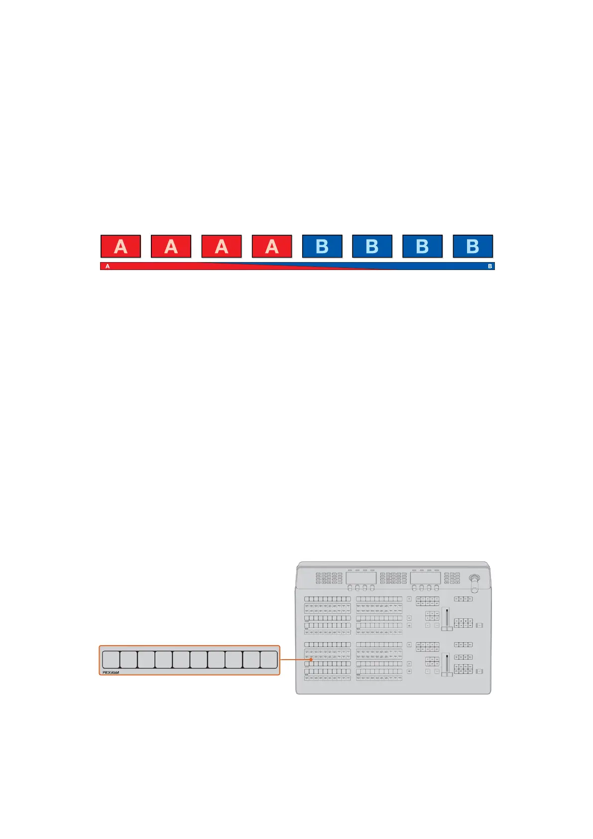 Press any of the source buttons on the program row to perform a cut transition from the program bus