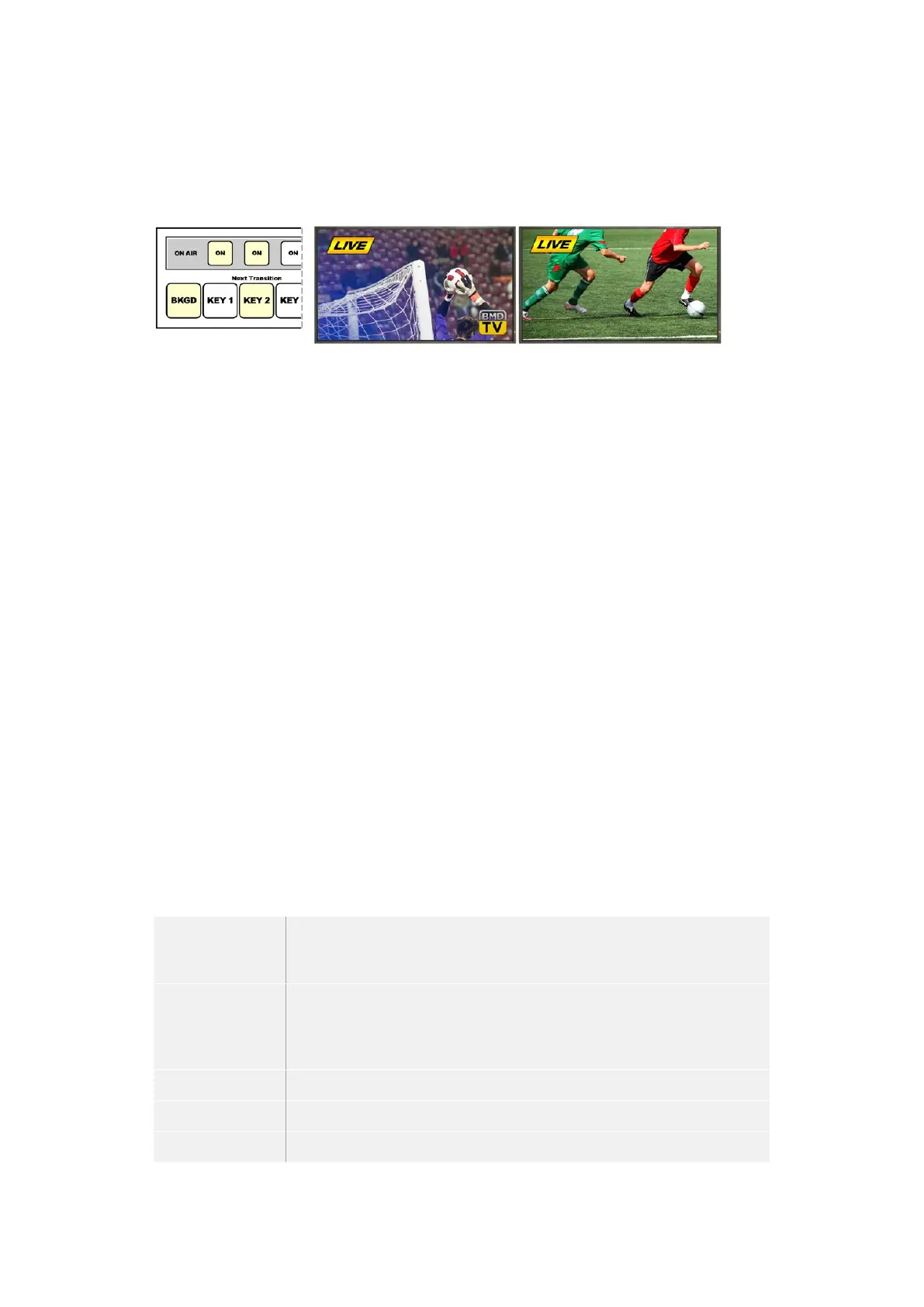 are transitioned to the program output using the next transition block. Downstream keyers can