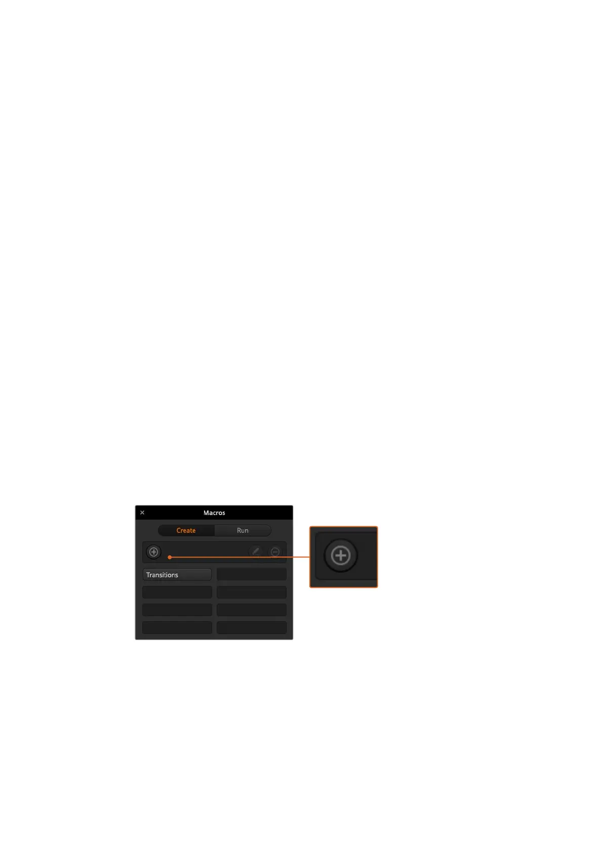4 Click on the create macro button (‘plus’ icon) to open the create macro popup window.