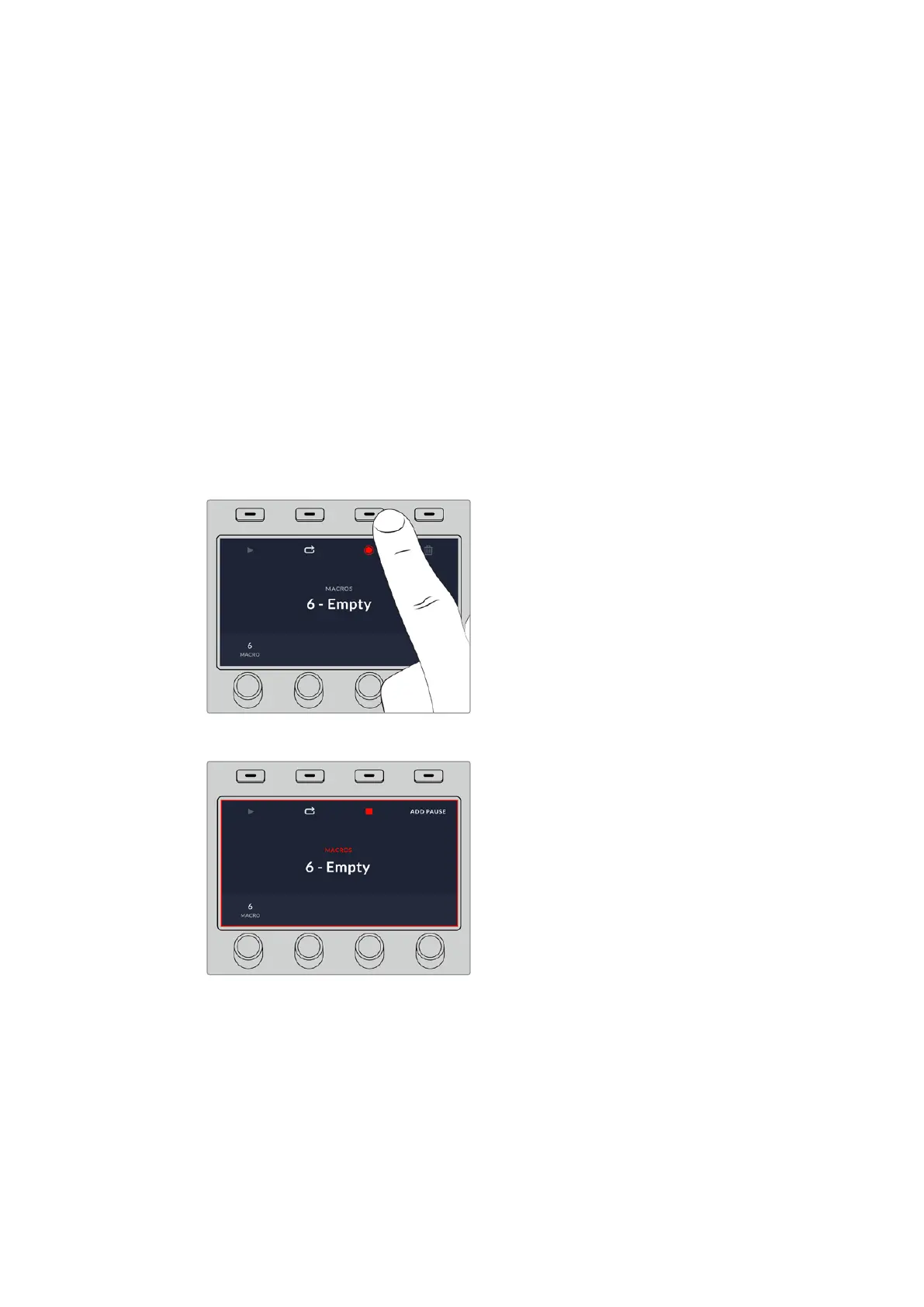 1 Press the ‘macro’ soft button to open the macros LCD menu.