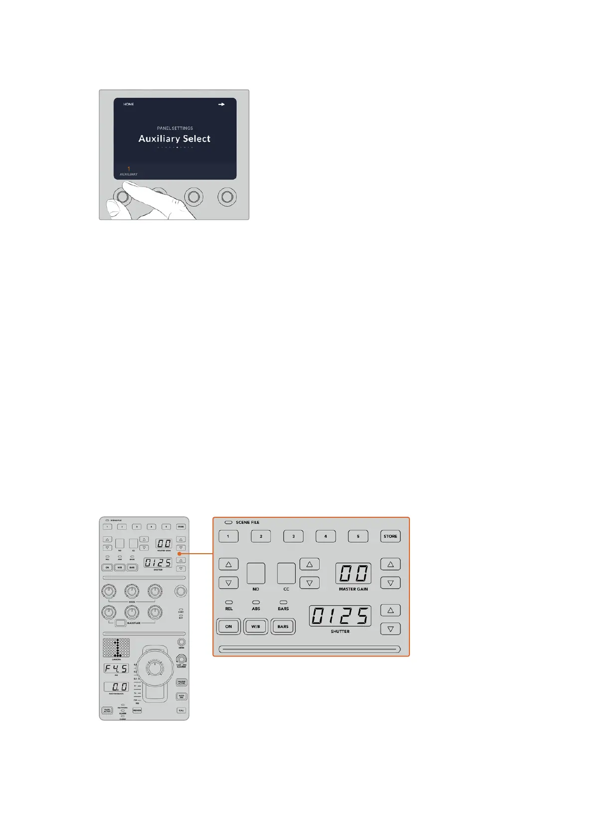 The upper section of each CCU is used to store and recall scene files, plus control camera