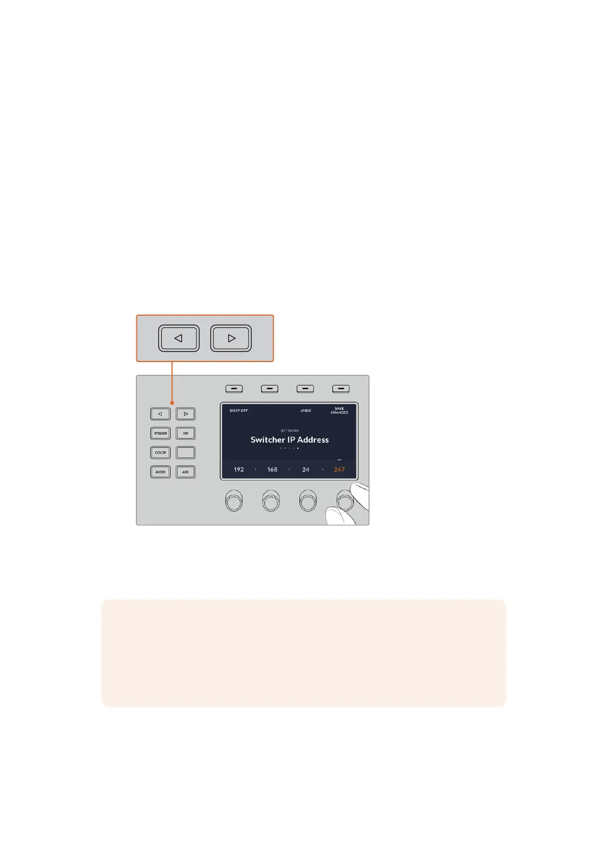 system control arrow buttons to navigate to the switcher IP
