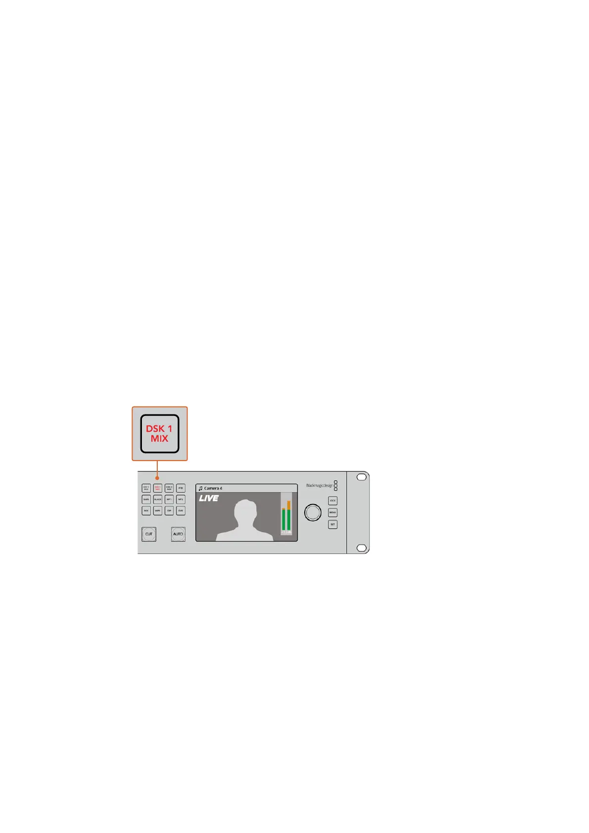 Press the DSK 1 MIX button to fade the downstream key 1 on and off air