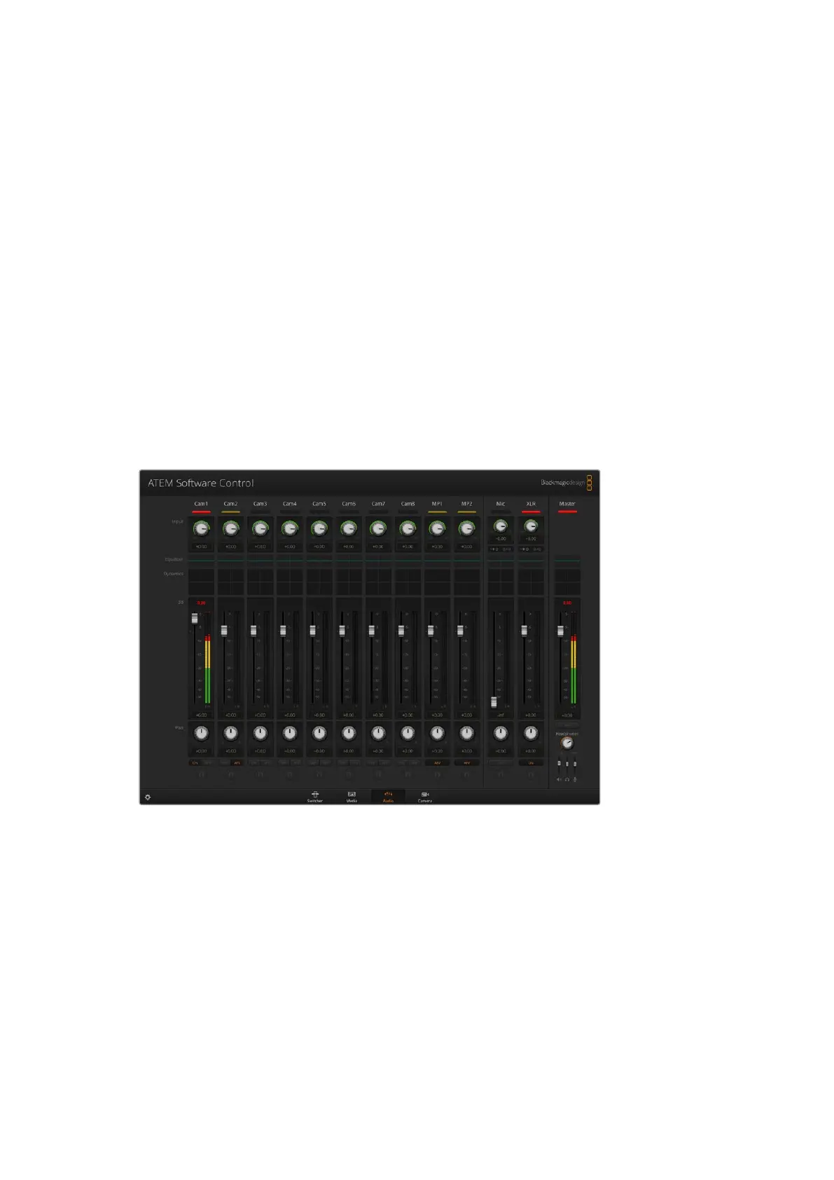 The Audio tab in ATEM Software Control contains an audio mixer interface which becomes