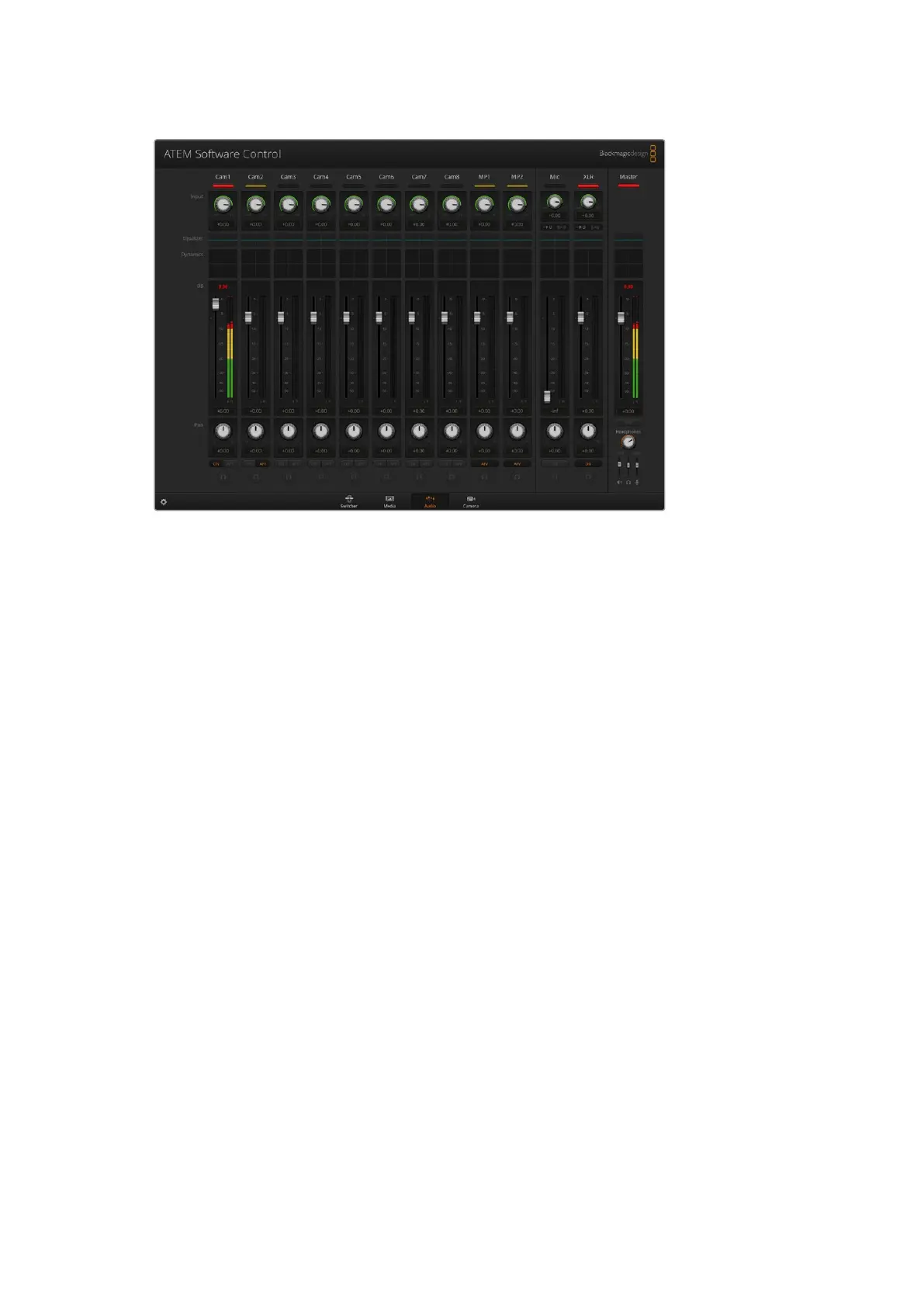 Drag the audio level fader to set the gain on the audio level for each camera and audio source.
