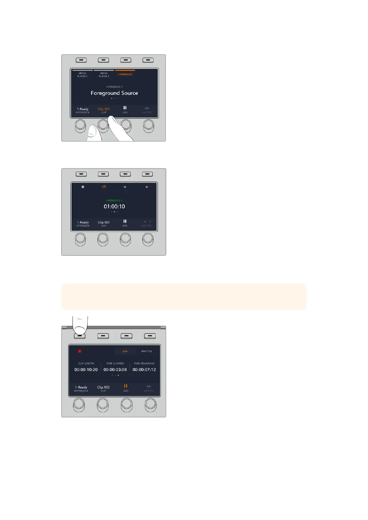 Use the third and fourth pages of the ‘media players’ LCD menu for more HyperDeck controls,