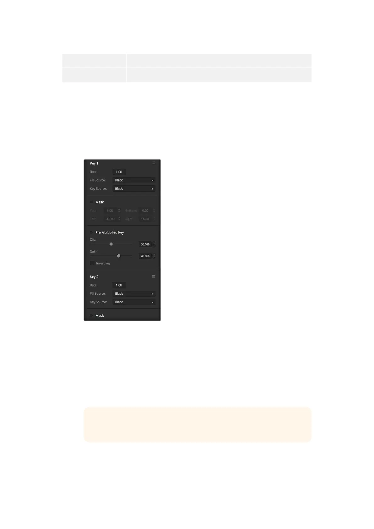 2 Use the drop down controls labeled fill source and key source to specify the fill and key