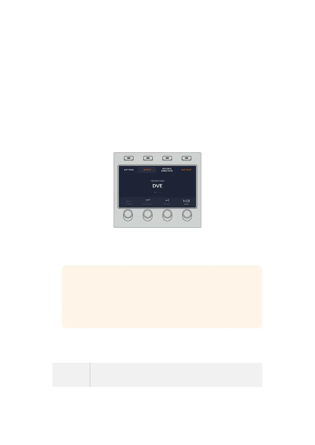 1 Press the DVE transition type button in the transition control block. The DVE settings menu